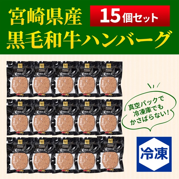 - セット内容:宮崎県産黒毛和牛ハンバーグ × 15個