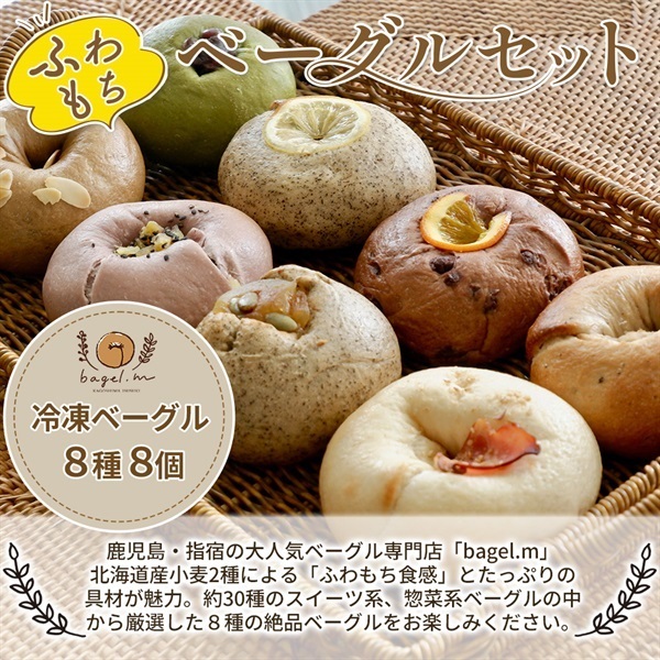 北海道産小麦100%使用。ふわもち食感が特徴のベーグルに、こだわりのフィリングをたっぷり巻き込んだ8種の詰め合わせ。ベーグル特有の固さやパサつきを感じさせず、噛むほどに素材の旨みが広がります。朝食やギフト、冷凍ストックにも最適なセットです。